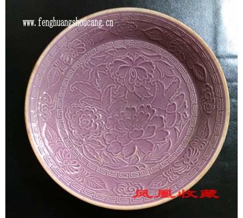 【宋朝定窑-有各种颜色,是作为赏赐官员近功臣之赏品!按颜色不同-如紫红绿等-赏给官级不同官员!严格按照礼制赏赐!瓷面有龙凤贵妃婴戏等!《此宋定盘-是牡丹花卉浮雕图案,包浆自然-岁月呈现!《浅紫色釉,极为稀少珍赏》!